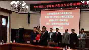 亞泰光電訊:2019年4月18日華中科技大學船海學院60周年之際,船海學院校友合作捐贈儀式在梧桐語問學中心問道廳隆重舉行,華中科技大校黨委常委、船海學院黨委書記、船海學院院長等校方領導參加并主持合作儀式。