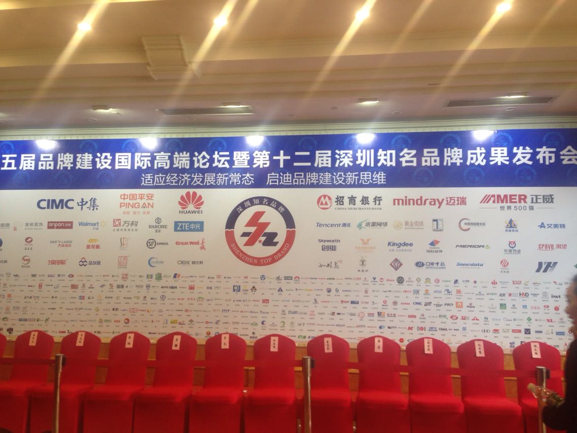 用產(chǎn)品贏得市場(chǎng),以品牌塑造價(jià)值!2015年4月25日下午,第五屆品牌建設(shè)國際高端論壇暨第十二屆深圳知名品牌成果發(fā)布會(huì),在深圳五洲賓館隆重舉行。