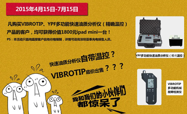 為慶祝亞泰光電自主研發的帶“精確溫控”功能快速油質分析儀成功問世, 自2015年4月15日起,特進行為期三個月的“以舊換新、免費試用”活動。