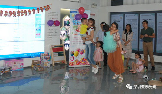 考慮到辛勤工作的父母們“陪娃心切”,絕對是業界良心的深圳市亞泰光電技術有限公司,今年精心組織了一場“六一親子活動”,在此要感謝親愛的鄭總,不僅同意占用上班時間來組織活動,更是拿出大筆經費,準備了大量精美的禮品,讓員工陪寶寶們過一個輕松、愉快的兒童節!