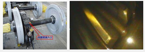 利用其可彎曲導向的插入管,通過齒輪箱的油量觀察口進入齒輪箱內部,檢查齒輪情況和齒輪箱底部是否有異物存在。