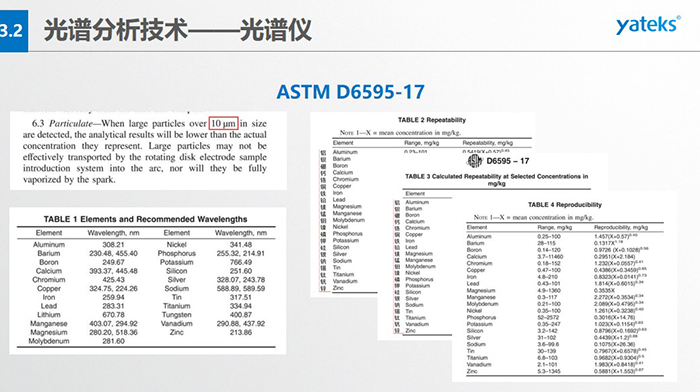 ASTM D6595使用旋轉(zhuǎn)圓盤電極原子發(fā)射光譜法測定在用潤滑油或液壓油中磨損金屬和污染物的標(biāo)準(zhǔn)試驗(yàn)方法----美國材料試驗(yàn)協(xié)會(huì)。   ASTM D6728 使用旋轉(zhuǎn)圓盤電極原子發(fā)射光譜法測定燃?xì)鈾C(jī)和柴油機(jī)燃料中污染物的標(biāo)準(zhǔn)試驗(yàn)方法----美國材料試驗(yàn)協(xié)會(huì)。   NB/SH/T 0865-2013在用潤滑油中磨損金屬和污染物元素測定旋轉(zhuǎn)圓盤電極原子發(fā)射光譜法----國家能源局。   DL/ T 1550-2016礦物絕緣油中金屬銅、鐵含量測定法旋轉(zhuǎn)圓盤電極發(fā)射光譜法----國家能源局。