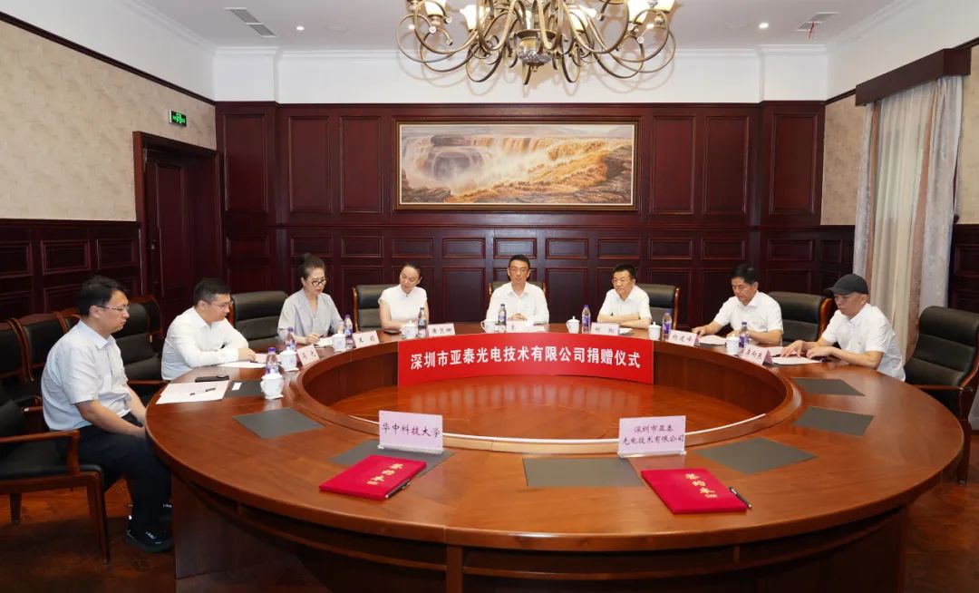 2025年7月17日,在華中科技大學(xué)梧桐語論道廳內(nèi),一場意義非凡的校企合作拉開了帷幕。作為國家級專精特新“小巨人”企業(yè),深圳市亞泰光電技術(shù)有限公司向其母校——華中科技大學(xué)慷慨捐贈了100萬元人民幣設(shè)立“亞泰光電獎教獎學(xué)金”,旨在支持教育事業(yè)的發(fā)展,推動科技人才的培養(yǎng)。此次捐贈不僅是對母校深厚情感的體現(xiàn),更是未來校企合作邁向新高度的重要里程碑。