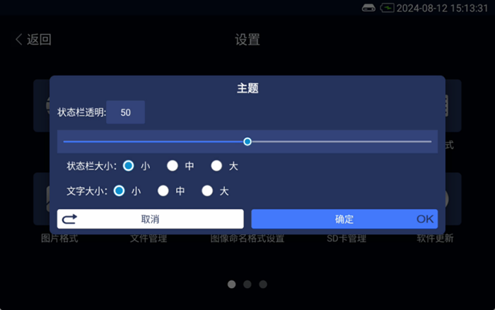 主題設(shè)置:可調(diào)節(jié)主界面狀態(tài)透明度,以及狀態(tài)欄大小,還有全局文字大