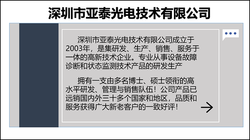 亞泰光電,國家高新技術企業(yè)和深圳知名品牌,10余年工業(yè)內(nèi)窺鏡和油品分析儀研發(fā)、生產(chǎn)行業(yè)經(jīng)驗,國內(nèi)外知名企業(yè)合作供應商,產(chǎn)品優(yōu)惠熱線:13316911816(微信同號) 0755-86656096 0755-86656390 聯(lián)系我們獲取更多優(yōu)惠詳情,期待您的指導與交流!
