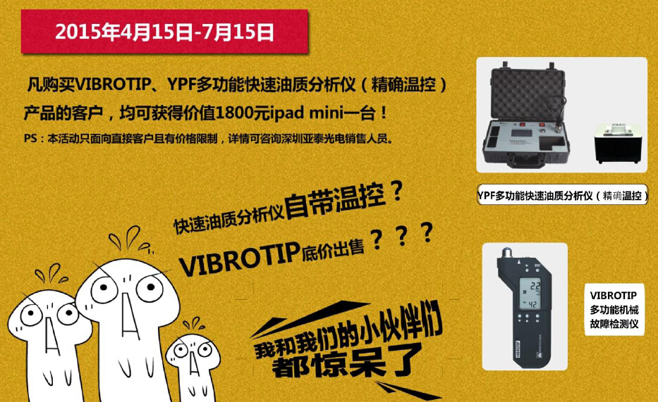 為慶祝亞泰光電自主研發(fā)的帶“精確溫控”功能快速油質(zhì)分析儀成功問世, 自2015年4月15日起,特進行為期三個月的“以舊換新、免費試用”活動。